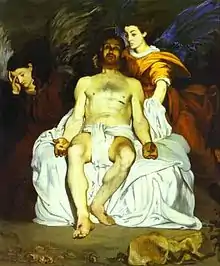 El Greco's re-evaluation was not limited to just scholarship. His expressiveness and colors influenced Eugène Delacroix and Édouard Manet.[18] The first painter who appears to have noticed the structural code in the morphology of the mature El Greco was Paul Cézanne, one of the forerunners of cubism.[4] Comparative morphological analyses of the two painters revealed their common elements, such as the distortion of the human body, the reddish and (in appearance only) unworked backgrounds, the similarities in the rendering of space etc.[19] According to Brown, "Cézanne and El Greco are spiritual brothers despite the centuries which separate them".[20] Fry observed that Cézanne drew from "his great discovery of the permeation of every part of the design with a uniform and continuous plastic theme".[21]