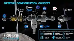 One or more of the preceding sentences incorporates text from this source, which is in the public domain: Potter, Sean (27 October 2020). "NASA, European Space Agency Formalize Artemis Gateway Partnership". NASA. Archived from the original on 27 October 2020. Retrieved 28 October 2020. - Wall, Mike (27 October 2020). "Europe will help build NASA's moon-orbiting Gateway space station". Space.com. Archived from the original on 1 November 2020. Retrieved 28 October 2020.