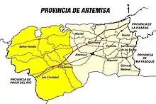 | Municipalities | Mariel, Guanajay, Caimito, Bauta, San Antonio de los Baños, Güira de Melena, Alquízar, Artemisa, Candelaria, San Cristóbal, Bahía Honda |