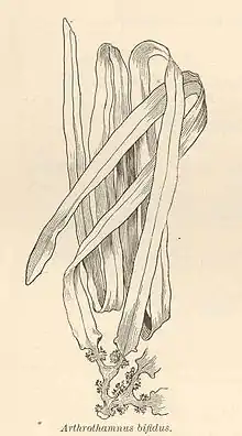Arthrothamnus is a genus of brown alga comprising approximately 2 species. It includes the algae commonly known as nekoashi-kombu, oarweed and chishima-nekoashi-kombu. Bifurcariopsis reproduces by means of conceptacles; it produces tetraspores and dispores and carpospores.