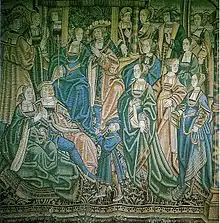 A Flemish tapestry depicting Arthur and Catherine's court.