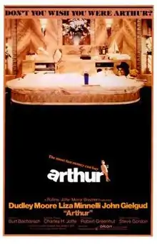 Arthur is a 1981 American romantic comedy film written and directed by Steve Gordon. It stars Dudley Moore as Arthur Bach, a drunken New York City millionaire who is on the brink of an arranged marriage to a wealthy heiress but ends up falling for a common working-class girl from Queens. It was the sole film directed by Gordon, who died in 1982 of a heart attack at age 44.