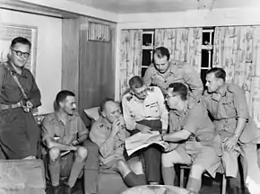 In mid-June, the battalion was committed to the Syria–Lebanon campaign against the Vichy French in the French Mandate for Syria and the Lebanon. Due to the involvement of Vichy French and Free French troops on opposite sides, the campaign was politically sensitive and as a result of heavy censorship not widely reported in Australia at the time; the nature of the fighting, where it was reported, was also played down as the Vichy forces outnumbered the Allies and were also better equipped.[90][91] The Allied plan involved four axes of attack, with the 7th Division committed mainly to the coastal drive on Beirut in Lebanon and the central thrusts towards Damascus in Syria.[92] Blackburn initially divided his time between divisional headquarters in Palestine and the front, while three companies of the 2/3rd, along with a battery of anti-tank guns, were the only divisional reserve.[93]
