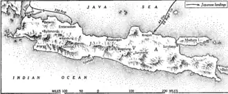 Blackburn conducted a fighting withdrawal through a series of fall-back positions to a point just southeast of Buitenzorg, then disengaged and moved back to Sukabumi, about 25 miles (40 km) southeast of Buitenzorg. Blackburn was then given orders to deploy Blackforce into the Bandung perimeter as a mobile reserve. It soon became clear that the Dutch were about to capitulate, and the Commonwealth commanders decided to leave the Dutch and make a stand south of Bandung.[124] Poorten surrendered Java on 8 March, but Blackburn was reluctant to do so, and sought medical advice on the idea of continuing resistance in the hills. He was advised against this course of action due to the likelihood of many soldiers becoming sick with tropical and other diseases, and surrendered his force on 11 March.[1][42][104] During the fighting on Java, 36 Australians were killed and 60 were wounded.[125] In his last order to his commanders Blackburn wrote:[42]