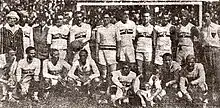He started his career influenced by his father, playing for SC Germânia, a Brazilian football team composed of German immigrants. After playing with a succession of São Paulo club sides from 1910 onwards, Friedenreich made his debut with the national team in 1914 which was the first ever game Brazil played beating Exeter City 2–0. In the game, Friedenreich famously lost two of his front teeth due to a heavy slide tackle.[3] He played twenty-two internationals, including wins in the 1919 and 1922 editions of the South American Championship, scoring ten goals. During the 1919 edition he became the first ever football player to score a hat-trick in a major international tournament.[4] On Brazil's 1925 tour of Europe, he was feted as the King of Football. He was also the top scorer in the São Paulo League in 1912, 1914, 1917, 1918, 1919, 1921, 1927 and 1929.[5]