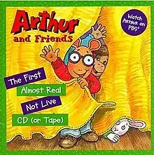 Arthur and Friends: The First Almost Real Not Live CD was the first album for the series, issued in October 1998. Many of the songs on this CD aired in shorter forms on the TV episode "Arthur's Almost Live Not Real Music Festival." Others were heard at other times on the program and some were never seen on the TV show. Tracks on this CD included the show's main title theme, "Library Card," multiple tracks of D.W.'s favorite song "Crazy Bus," (by former show writer/executive story editor Joe Fallon), "Leftovers Goulash" (which utilizes a range of classic music and opera compositions, most notably the Hungarian Rhapsody No. 2), "The Ballad of Buster Baxter," (a more complete form than that heard on the television story) and "Jekyll and Hyde."