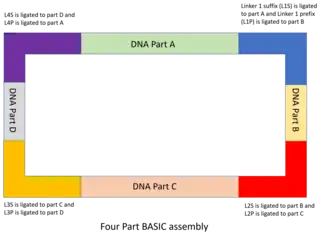 The BASIC assembly strategy was developed in 2015 and sought to address the limitations of previous assembly techniques, incorporating six key concepts from them: standard reusable parts; single-tier format (all parts are in the same format and are assembled using the same process); idempotent cloning; parallel (multipart) DNA assembly; size independence; automatability.[48]