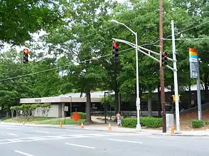 Arts Center station is a train station in Atlanta, Georgia, serving the Red and Gold lines of the Metropolitan Atlanta Rapid Transit Authority (MARTA) rail system. It is the northernmost of three MARTA stations that serve Midtown Atlanta, the others being Midtown and North Avenue.