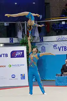 ![]() Artur Beliakou and Aliona Dubinina at the 2014 Acrobatic Gymnastics World Championships. | |