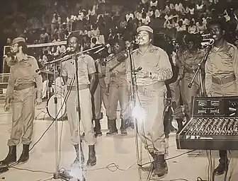 During and after the struggle for Angola’s independence, Nunes, Urbano de Castro, David Zé, along with other musicians started to be celebrated and appreciated by Angolans, PALOPs, and even their president Agostinho Neto, who commissioned them to form a squad representing a musical branch of the FAPLA called the FAPLA Povo Alliance. They went on to attend the independence celebrations of Cape Verde, Mozambique, São Tomé and Príncipe and Guinea-Bissau, where they would perform their songs on tours with the president, as a sort of embassy of Angolan culture, Pan-Africanism and support for other revolutions abroad.[7]