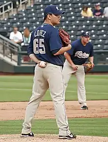 On December 13, 2004, López was selected by the San Diego Padres in the minor league phase of the Rule 5 draft.[2] He spent the 2005 season with the High-A Lake Elsinore Storm, pitching to a 5-11 record and 5.85 ERA in 27 appearances. In 2006, López split the year between Lake Elsinore and the Double-A Mobile BayBears, and also appeared in 21 games for the Diablos Rojos del México of the Mexican League, but struggled to a 9.49 ERA. He spent the majority of the 2007 season with the Double-A San Antonio Missions, notching a 4.54 ERA, and also recorded a 5.71 ERA in 9 games for the Diablos. He played in 3 games for the Triple-A Portland Beavers in 2008, spending the rest of the season with the Diablos, notching a 9-3 record and 3.45 ERA in 16 appearances. From 2001 to 2008 in the minors, Lopez had a 38–39 record with a 5.15 ERA.