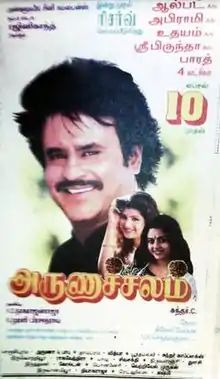 Arunachalam is a 1997 Indian Tamil-language action drama film directed by Sundar C. and written by Crazy Mohan. The film stars Rajinikanth, Soundarya and Rambha, with Jaishankar, Ravichandran and Visu in supporting roles. The soundtrack and background score for the film was composed by Deva, while U. K. Senthil Kumar handled the cinematography. The film is loosely based on the 1902 novel Brewster's Millions by George Barr McCutcheon.[1]