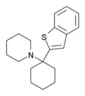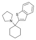 - He XS, Raymon LP, Mattson MV, Eldefrawi ME, de Costa BR (April 1993). "Synthesis and biological evaluation of 1-[1-(2-benzo[b]thienyl)cyclohexyl]piperidine homologues at dopamine-uptake and phencyclidine- and sigma-binding sites". Journal of Medicinal Chemistry. 36 (9): 1188–93. doi:10.1021/jm00061a009. PMID 8098066.