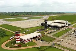 Asaba International Airport (IATA: ABB, ICAO: DNAS):[5] is the primary international airport serving Asaba and the whole of Delta State, Nigeria, and other nearby cities.[6] It is located approximately 7.9 kilometers (4.9 mi) east of the city centre of Asaba.[7]