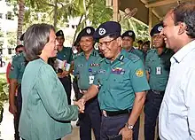 During the Holey Artisan Attack, DMP Commissioner, Asaduzzaman Mia, and several officers struck inside and opened fire on the militants in an attempt to rescue civilians from the site. 9 people were brought back from the site in the attempt. Prime Minister Sheikh Hasina was briefed by the Commissioner and she instructed him to move away with his men and informed him the Army Chief Belal Shafiul Huq was on his way from Sylhet.[7] He has been known as one of the figurehead who contributed in uprooting terrorism from the country.[8]