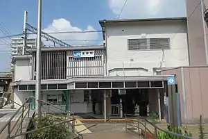 The station consists of two opposed side platforms connected by an elevated station building. The station is staffed.