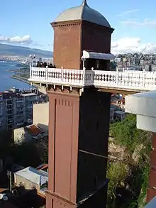 Asansör (Turkish for "elevator", derived from the French word ascenseur) is a historical building in İzmir's Karataş quarter, within the boundaries of the metropolitan district of Konak. It was built in 1907 as a work of public service by a wealthy Jewish banker and trader of that period, Nesim Levi Bayraklıoğlu, in order to ease passage from the narrow coastline of Karataş to the hillside, the elevator within the building serving to carry people and goods through the steep cliff between the two parts of the quarter.