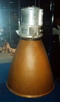The LMAE traces its origin to the earlier Bell Aerosystems engines (8096, 8247) used in the RM-81 Agena, the rocket upper stage and satellite support bus developed by Lockheed initially for the canceled WS-117L reconnaissance satellite program.[3] The Agena served as an upper stage for several defense, intelligence, and exploration programs: SAMOS-E, SAMOS-F (ELINT Ferret) and MIDAS (Missile Defense Alarm System) military early-warning satellites, Corona photo intelligence program, and the Ranger and Lunar Orbiter lunar probes.