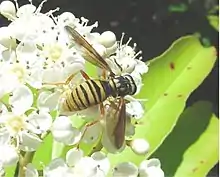 The Aschiza are a section of the Brachycera. Two large families, the Syrphidae and the Phoridae, and a number of smaller taxa are in this group. They are similar to most of the familiar Muscomorpha with one notable exception; they do not possess a ptilinum, so lack the prominent ptilinal suture on the face as in other muscoid flies.[1] They do still have a puparium with a circular emergence opening, but it is not as precisely ellipsoid in shape as is typical for other muscoids. The term was first used by Eduard Becher .