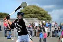 Its purpose is to protect the hand from being hit by opponent's hurleys (or camogie sticks) when catching the sliotar (ball) during play. Its name derives from the use of ash wood to make hurleys and camogie sticks.[2] Most players wear the ashguard only on their dominant hand, although Kevin Downes wore one on each hand.[3]