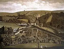 The current Ashcombe House was originally part of the much larger mid-eighteenth century structure, and is an L-shaped three-bay survival of the eastern wing.[2] There is a five-bay orangery close to the house.[2][8]