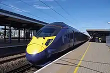 In 2007, a new maintenance depot, operated by Hitachi, opened to the northeast of the station, alongside the Canterbury West branch.[69] A high-speed domestic service, operated by Southeastern to London St Pancras via Ebbsfleet International and Stratford International, began with a trial service in June 2009.[70] A test train running at up to 140 miles per hour (230 km/h) covered the distance between Ashford International and St Pancras in 29 minutes.[71] A full service began in December 2009, which has allowed Ashford to become a commuter town for London.[72][73]