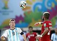 On 21 September 2011, he was invited to the Iran national team by Carlos Queiroz.[50] He scored twice on his debut for Iran against Qatar on 29 February 2012 in a World Cup qualifier.[51] Upon qualification to the 2014 World Cup, his next international goals came on 15 and 19 November in Asian Cup qualifying wins over Thailand and Lebanon, sealing Iran's place in the 2015 Asian Cup as well.[52] Dejagah was named in Iran's 2014 FIFA World Cup squad by Carlos Queiroz.[53] He started for Iran in their opening match against Nigeria, but was substituted in the 73rd minute by Alireza Jahanbakhsh. He also played 85 and 68 minutes in the next matches against Argentina and Bosnia and Herzegovina, respectively. He was called into Iran's 2015 AFC Asian Cup squad on 30 December 2014 by Carlos Queiroz.[54]