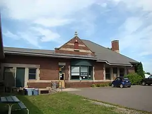 The depot was designed by Charles Sumner Frost and was used by the Chicago and North Western Railway and its subsidiary, the Chicago, St. Paul, Minneapolis and Omaha Railway (Omaha Road), for the Flambeau 400 service to Chicago. More recently, the building has been utilized as a fitness center and the train tracks converted into an exercise trail.[3]
