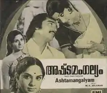Ashtamangalyam is a 1977 Indian Malayalam-language film directed by P. Gopikumar[1] and produced by K. H. Khan Sahib. The film stars Kamal Haasan, Vidhubala, Kanakadurga, Mallika Sukumaran, P. K. Abraham and Padmapriya. The film has a musical score by M. K. Arjunan.[2]