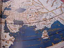 The term "Asia" is believed to originate in the Bronze Age placename Assuwa (Hittite: 𒀸𒋗𒉿, romanized: aš-šu-wa) which originally referred only to a portion of northwestern Anatolia. The term appears in Hittite records recounting how a confederation of Assuwan states including Troy unsuccessfully rebelled against the Hittite king Tudhaliya I around 1400 BCE.[38][39][40] Roughly contemporary Linear B documents contain the term asiwia (Mycenaean Greek: 𐀀𐀯𐀹𐀊, romanized: a-si-wi-ja), seemingly in reference to captives from the same area.[41][42]