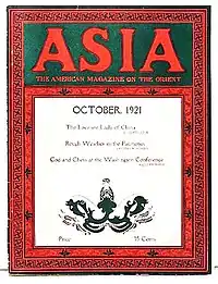 Asia magazine was established by the American Asiatic Association in 1898 as Journal of the American Asiatic Association. An editorial in the Journal explained: "The ignorance of our people in regard to the countries of the Far East is unquestionably a serious obstacle to the legitimate extension of American influence."[1] In 1917 Willard Straight, who had been involved in promoting American trade and investment in Korea and China since the turn of the century, and his wife, Dorothy Payne Whitney Straight, bought the magazine and renamed it Asia and continued its publication as a popular journal of commerce and travel. The Straights also were co-founders of The New Republic magazine.[2]