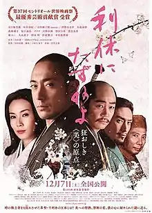 Ask This of Rikyu (利休にたずねよ, Rikyū ni tazuneyo) is a 2013 Japanese biographical film directed by Mitsutoshi Tanaka[1] and based on a novel by Kenichi Yamamoto. This film won the Best Artistic Contribution Award at the 37th Montréal World Film Festival, the Best Director Award at the 2014 Osaka Cinema Festival, the 30th Fumiko Yamaji Cultural Award, and the 37th Japan Academy Film Prize in nine categories, including Best Art Direction, Excellent Film and Excellent Leading Actor.[2][3]