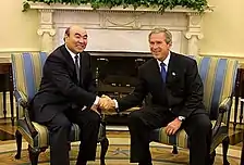 Akayev was initially seen as an economically right-wing liberal leader. He commented in a 1991 interview that "Although I am a Communist, my basic attitude toward private property is favorable. I believe that the revolution in the sphere of economics was not made by Karl Marx but by Adam Smith."[2] As late as 1993 political analysts saw Akayev as a "prodemocratic physicist."[3] He actively promoted privatization of land and other economic assets and operated a relatively liberal regime compared with the governments of the other Central Asian nations. He was granted lifelong immunity from prosecution by the Lower House of Parliament in 2003.