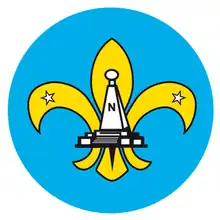 The membership badge of the Asociación de Scouts del Ecuador incorporates the Mitad del Mundo monument delineating the equator.