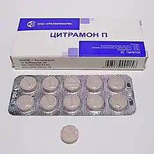 In Germany, it is sold as dolomo, Dolopyrin AL, HA-Tabletten, Melabon K, Neuralgin, ratiopyrin, Thomapyrin Classic, Thomapyrin Intensiv,[6] in Austria as Thomapyrin, and InfluASS, in Israel as Acamol Focus, Paramol Target and Exidol, in Romania as Antinevralgic P [7] and Antinevralgic Forte,[8] and in Russia, Belarus and Eastern Europe as Citramon.[9]