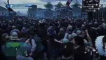 At E3 2014, trailers were released for the game, demonstrating the game's cooperative multiplayer mode for up to four players, a first for the series.[26] The trailer featured Lorde's cover of Everybody Wants to Rule the World, which was produced by Michael A. Levine and Lucas Cantor.[27] The development team was able to use the new power of the PlayStation 4 and Xbox One to improve the NPC crowds. Up to 1000 individual AI characters can appear in a crowd, each acting independently and reacting to each other as well as the player's actions.[6] The PC version of the game uses Nvidia's GameWorks technology such as TXAA anti-aliasing, advanced DX11 tessellation and Nvidia PhysX technology, due to a partnership between Ubisoft and Nvidia.[28][29]