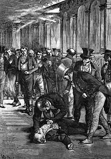 ![]() Immediate aftermath of Perceval's assassination, 11 May 1812 (a 1909 representation) | |