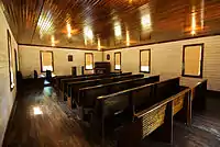 The Assemblies of God holds to a conservative, evangelical and Arminian theology as expressed in the Statement of Fundamental Truths and position papers, which emphasize such core Pentecostal doctrines as the baptism in the Holy Spirit, speaking in tongues, divine healing and the Second Coming of Jesus Christ. It defines for itself a fourfold mission to evangelize others, worship God, disciple believers, and show compassion.[7] The fellowship's polity is a hybrid of presbyterian and congregational models. This tension between local independence and national authority is seen in the AG's historical reluctance to refer to itself as a denomination, preferring the terms fellowship and movement.[8] The national headquarters are in Springfield, Missouri, where the administrative and executive offices and Gospel Publishing House are located.