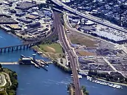 Assembly Square was a proposed stop on the Urban Ring Project.[22] The Urban Ring was to be a circumferential bus rapid transit (BRT) Line designed to connect the current radial MBTA rail lines to reduce overcrowding in the downtown stations; it was canceled in 2010.[23] Under draft plans released in 2008, the Urban Ring would have run on Grand Union Boulevard, with a stop at Foley Street about 800 feet (240 m) west of the Orange Line.[24]