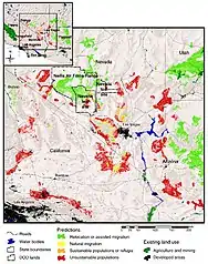 June 2022, the U.S. Fish and Wildlife Service published a proposed rule in the Federal Register that would "revise section 10(j) regulations under the Endangered Species Act to better facilitate recovery by allowing for the introduction of listed species to suitable habitats outside of their historical ranges. The proposed change will help improve the conservation and recovery of imperiled ESA-listed species in the coming decades, as growing impacts from climate change and invasive species cause habitats within their historical ranges to shift and become unsuitable."[64] The comment period ended August 2022, with more than 500 comments posted online by supporters and opponents.[65] The final decision is scheduled for publication June 2023.[66] A 2010 paper in Conservation Letters had pointed out that, while no statutory changes appeared necessary to facilitate this newly proposed form of climate adaptation, "current regulations are an impediment to assisted colonization for many endangered animal species, whereas regulations do not necessarily restrict assisted colonization of endangered plants."[67]