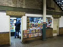 On the southbound side, the station has an entrance and windows into a vacant store. The heavy brick-faced square columns on the southbound platform support the store above.[2]: 4–5 The store was originally constructed in 1868 as an A. T. Stewart, but it had become a Wanamaker's by the time the station was constructed and opened.[2]: 4–5 [10]: 94 The Wanamaker's store was closed by 1954. It served as Kmart location from November 1996 to July 2021.[64][65] A Wegmans location is planned to open within the Kmart space in late 2023.[66][67]