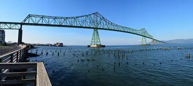 Ferry service between Astoria and the Washington side of the Columbia River began in 1926.[5] The Oregon Department of Transportation purchased the ferry service in 1946.[6] This ferry service did not operate during inclement weather and the half-hour travel time caused delays. In order to allow faster and more reliable crossings near the mouth of the river, a bridge was planned. The bridge was built jointly by the Oregon Department of Transportation and Washington State Department of Transportation.[7]