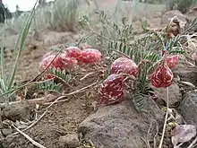 Astragalus whitneyi is a species of legume known by the common name balloon-pod milk-vetch, balloon milk-vetch, or Whitney's locoweed. It is a native to the Cascade Range and the Sierra Nevada (U.S.) and is unusual for its bright red or red-splotched balloon-like seedpods.