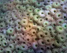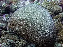 Astreopora myriophthalma, sometimes known as porous star coral,[3] is a species of hard coral found in shallow water in the tropical Indian and Pacific Oceans. It is a common species with a wide range and the International Union for Conservation of Nature has assessed its conservation status as being of "least concern".