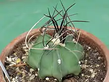 Mandujano, Maria; Bravo, Yolotzin; Verhulst, Johannes; Carrillo-Angeles, Israel; Golubov, Jordan (Feb 2015). "The population dynamics of an endemic collectible cactus". Acta Oecologica. 64: 1–7. doi:10.1016/j.actao.2014.12.004.
