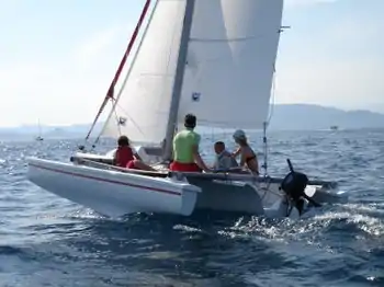 | Draught | 0.25 m (no centreboard, built-in foil on each float) |