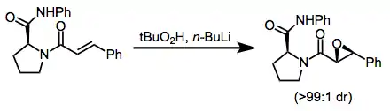 Phase-transfer catalysis has been applied successfully to epoxidations of diaryl (E)-enones (chalcones).[15] Lanthanide/BINOL is effective for this class of substrates as well.[20]