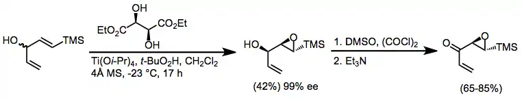Oxidation of epoxy alcohols generated via Sharpless epoxidation is a third method for the enantioselective synthesis of chiral α,β-epoxy carbonyl compounds.[30] Swern and Parikh-Doering conditions are most commonly applied to accomplish these oxidations.