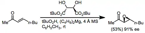 Dialkyl (E)-enones have been most commonly epoxidized using either lanthanide/BINOL systems[16] or a magnesium tartrate catalyst.[17]