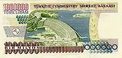 The dam was depicted on the reverse of the Turkish one-million-lira banknotes of 1995–2005[4] and of the 1 new lira banknote of 2005–2009.[5]